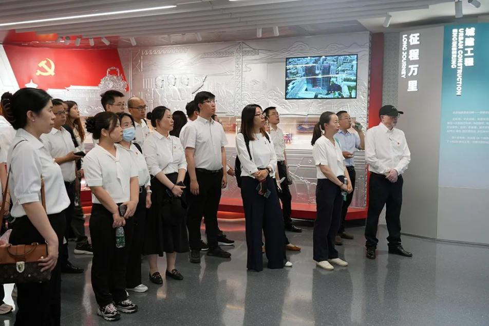 参观结束后,全体党员干部来到城建集团企业展览中心学习参观,在历史长卷与时代印记的交织中,循着集团从铁道兵铁血荣光到基建工程兵砥砺前行、从脱下军装投身市场到铸就行业脊梁的壮阔足迹,深刻感受集团公司与党和国家命运同频共振的40余载峥嵘岁月。无论是革命建设年代的烽火淬炼、创业十年的筚路蓝缕,还是立业十年的改革突围、兴业十年的跨越腾飞,以及强业十年的战略领航,历代党和国家领导人的殷切期望如灯塔指引,集团全产业链布局与经典工程如星辰闪耀,共同勾勒出集团作为国际知名城市建设综合服务商的硬核实力。当“国匠兵魂,使命必达”的铮铮誓言穿透时空而来,党员干部们无不心潮澎湃,为能成为这支铁军队伍的一员深感荣光。