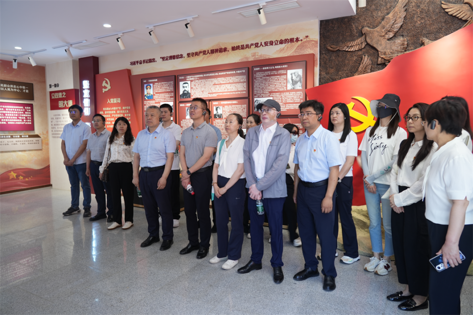 在八宝山革命公墓爱国主义教育广场,在鲜红的党旗下,全体党员重温了入党誓词。