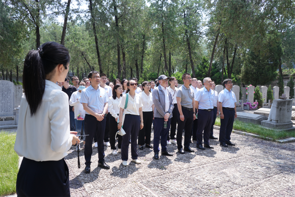 全体党员干部列队走进苍松翠柏环绕的王荷波等烈士墓区,聆听讲解员深情讲述烈士们的峥嵘岁月,仿佛穿越时空,与先烈们进行一场心灵的对话,开启一场涤荡心灵的红色之旅。