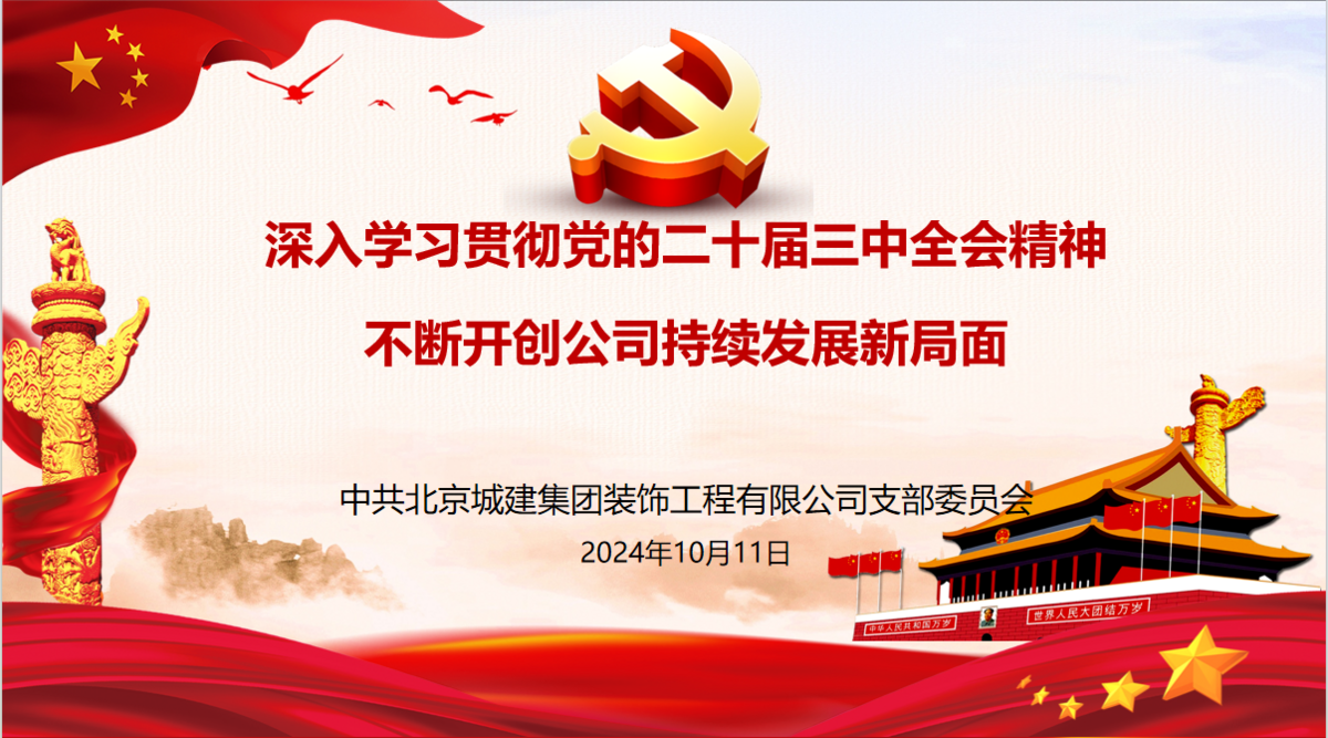 为全面深入学习领会党的二十届三中全会精神,10月11日下午,公司党支部组织召开党的二十届三中全会精神宣讲会。公司党支部书记、主持工作副总经理李波主持会议并作以《深入学习贯彻党的二十届三中全会精神不断开创公司持续发展新局面》为题的宣讲报告。公司各系统领导、部门负责人、各项目经理及全体党员参加会议。
