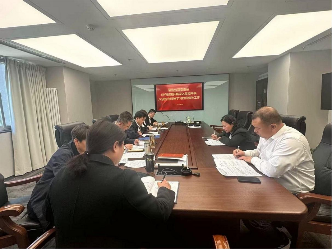会议要求,要扎实加强组织领导,突出实干实绩成效 。要压紧压实责任,公司支委对学习教育负总责,抓好统筹协调。公司主要负责同志要担负起第一责任人责任,领导班子及支委其他成员履行好“一岗双责”,紧密结合中心工作,精心组织实施,加强分类指导,做好宣传引导,坚决反对形式主义。公司上下要以高度的政治自觉、思想自觉和行动自觉,扎实开展学习教育。党员干部要带头,全面落实各项任务。全体党员干部要迅速行动起来,结合工作实际,学深悟透中央八项规定精神,共同推动装饰公司作风建设取得新成效。