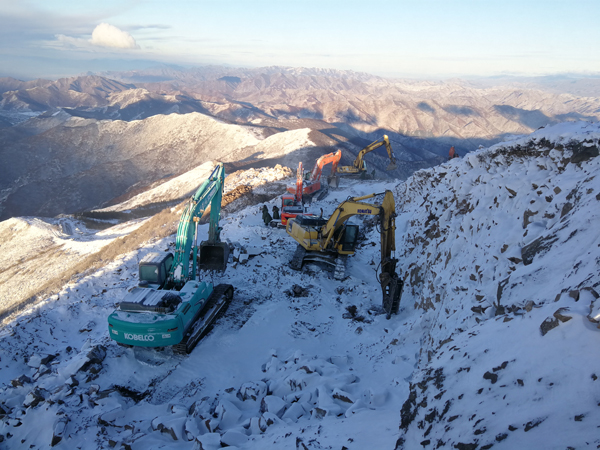 京北小海坨山巅,城建集团的建设者面对世界上都没有标准的雪道建设施工大胆使用三维无人机对全地貌进行扫描,并建立全地形模块,精确计算土方开挖量与回填量实现绿色建造。在这个地形复杂,大型设备无法作业,仍需要骡马运输的区域,科技创新实现了减少二分之一的土方开挖量,并实现了开挖土方全部分区回填。