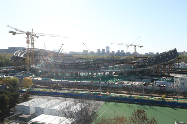 国家速滑馆(俗称:冰丝带)屋面钢结构环桁架整体安装完成,曾经图纸上的场馆如今已初露端倪。如果说环桁架是球拍的框,那么屋盖的索结构就是球网。整个工程使用了158根名为高钒封闭索的材料,这种材料曾经需要完全进口,就是索中的钢丝排列和造型极难制作,每根索都由两个同心圆组成,中间小圆为普通圆形钢丝组成,外圈大圆为3—5层的“Z”形钢丝组成。城建集团集中优势人才,联合国内专业厂家克难创新,并进行多轮试验,实现了材料的国产化并付诸于实践,预计年底索网完成提升、张拉等工序,届时整个屋面结构就全部完成。这项技术的完成也将填补北京市相关施工技术的空白。