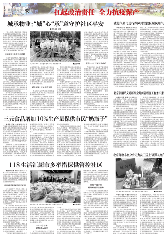 从4月下旬北京突发疫情至今,城承物业全体员工全力奋战在服务保障一线,配合属地社区和医疗机构工作,“城”心“承”意守护社区居民平安。