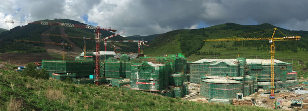 7月15日,由亚泰集团金典公司承担施工的太舞四季文化旅游度假区酒店群及附属第一批工程主体结构封顶。该工程位于河北省张家口市崇礼县四台嘴乡东北部营岔规划区,是2022年冬奥会配套项目,占地面积30公顷,建筑面积23.3万平方米。金典公司自2014年3月15日进场后,仅用9个月时间,就完成了第一批酒店群、后勤、办公服务大楼、中心锅炉房等18万平方米的主体结构。目前施工的主体结构还有酒店群k座,山顶餐厅、造雪泵房、设备管理用房、缆车下站。