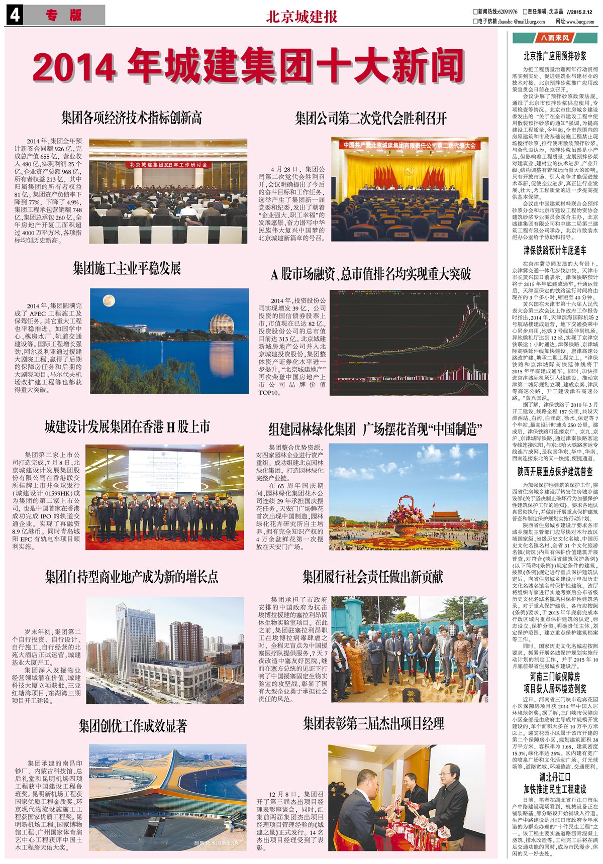 本网授权发布2014城建集团十大新闻