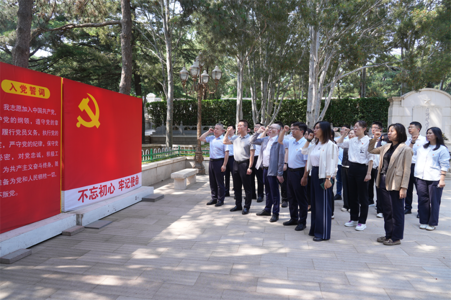 在八宝山革命公墓爱国主义教育广场,在鲜红的党旗下,全体党员重温了入党誓词。
