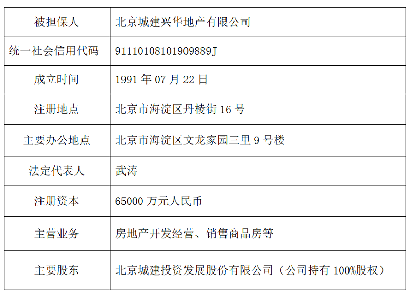 被担保人北京城建兴华地产有限公司(以下简称“兴华公司”),是北京城建投资发展股份有限公司(以下简称“公司”)的全资子公司