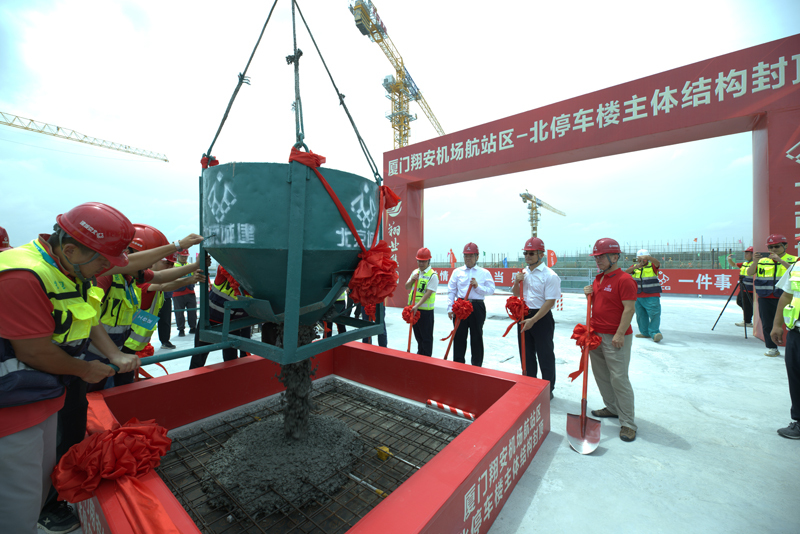 由工程总承包部承建的厦门翔安机场航站区三标段项目作为东南沿海地区的新建综合交通枢纽,是翔安机场重要的配套设施。该项目位于翔安机场T1航站楼前,主要建设内容包括南停车楼、北停车楼、交通中心、旅客过夜用房等多个单体建筑,总建筑面积28.66万平方米。其中交通中心地上3层、地下2层,是连接机场的轨道交通和陆上交通的集散中心,旅客从航站楼通过交通中心换乘任何交通工具的最远距离不超过170米,南北停车楼总车位数3613个,旅客过夜用房总客房数618间。