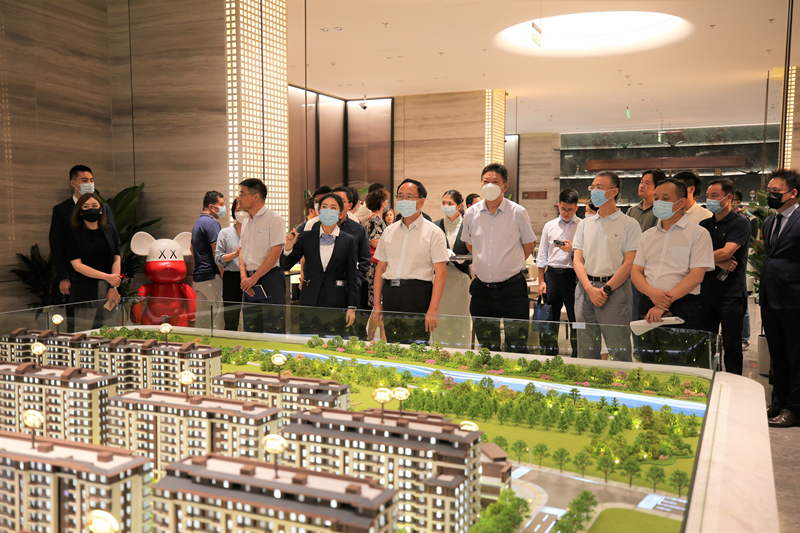 陈代华一行实地察看了土城新村项目周边环境、区域控规等,在国誉燕园体验中心察看了沙盘、样板间,详细了解项目开发与销售情况,听取了城建发展、新城公司有关负责人的相关工作汇报。
