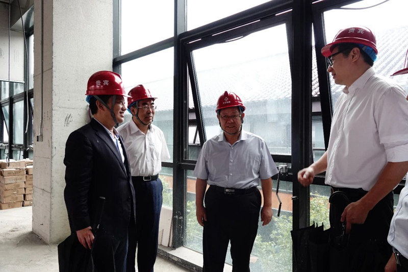 8月24日,东城区委书记孙新军,区委副书记、区长周金星来到集团建筑部东四织补项目检查调研。北京国资公司党委书记、董事长赵及锋、党委副书记、董事、总经理张杰,集团公司党委书记、董事长常永春,党委常委、副总经理、建筑部总经理张锁全等参加调研。