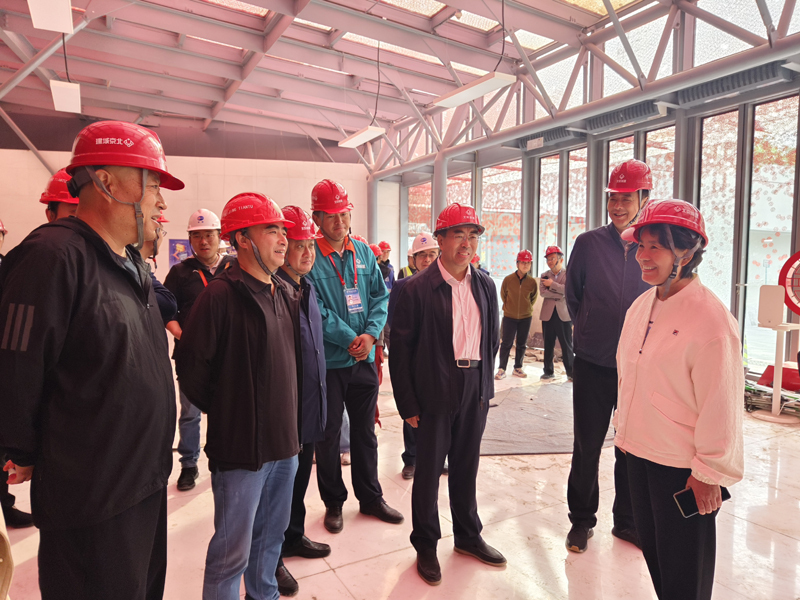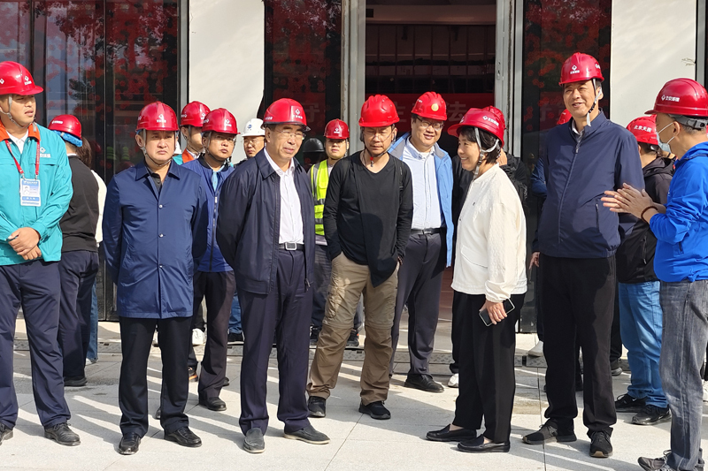 韩子荣一行深入施工现场察看室外景观改造、S2口改造、室内展陈及附属配套、S1口改造等施工情况,听取了集团工程总承包部党委书记陈路关于项目整体情况的介绍,详细了解工程施工进展、质量和安全管理、现场绿色文明施工等情况,对项目各方面管理工作给予肯定。