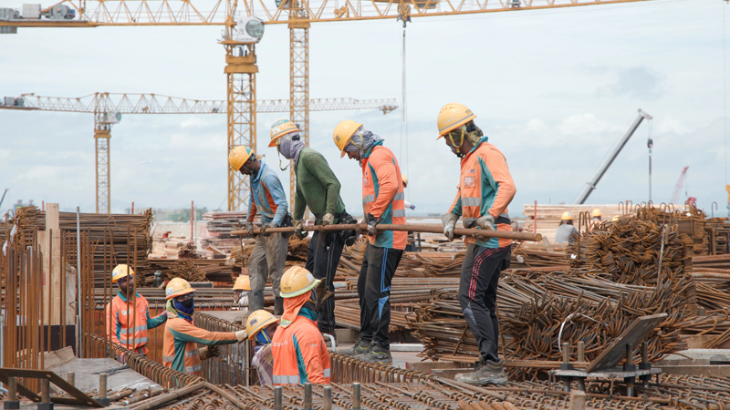 在海外,国际事业部各项重点工程的建设现场热火朝天。香港机场项目目前客运大楼工程累计浇筑混凝土完成结构总量的30%,新塔台工程提前实现主体结构封顶并全面展开室内装修机电施工。孟加拉希莱特机场扩建项目正全面组织开展全场地地形复测、地下结构承台钢筋绑扎、墙体基层处理等施工内容。援巴基斯坦瓜达尔新国际机场项目推动道路面层铺设和路灯安装等工程施工,现已迈入全面竣工的冲刺阶段。马尔代夫维拉纳国际机场改扩建项目新建油库和新货运航站楼依次移交给业主。援白俄罗斯国家足球体育场项目目前金属屋面、幕墙、机电安装等各项施工正全力推进。